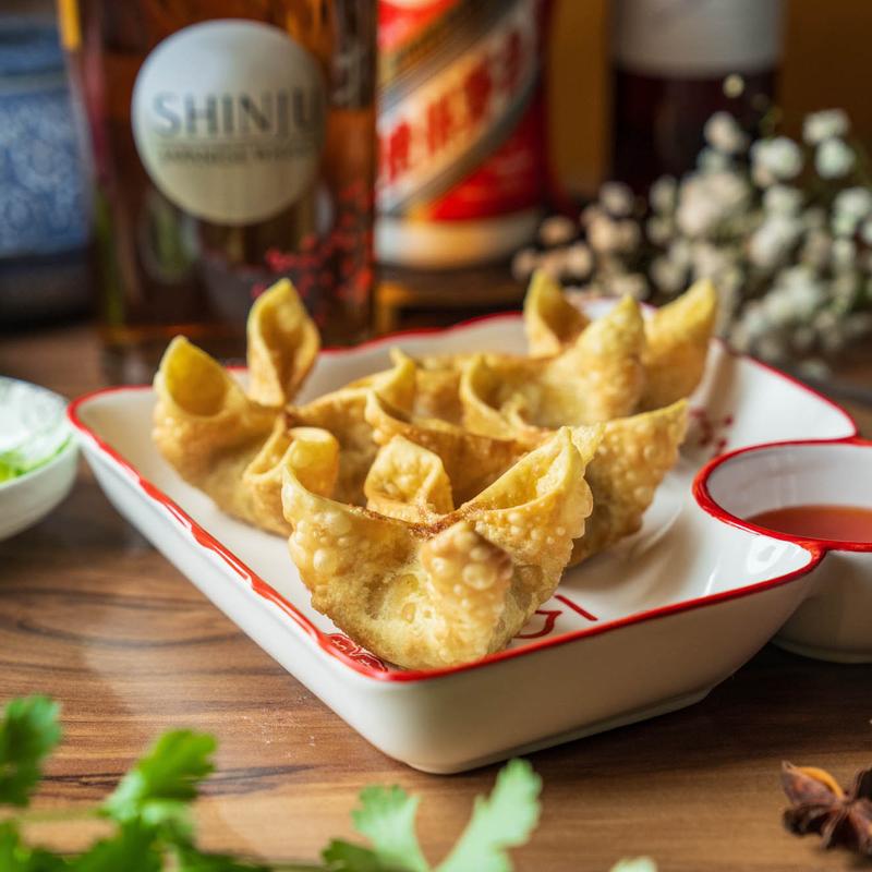 House-Made Crab Rangoons, Crispy, gold wontons filled with fresh crab and cream cheese, and made fresh daily.